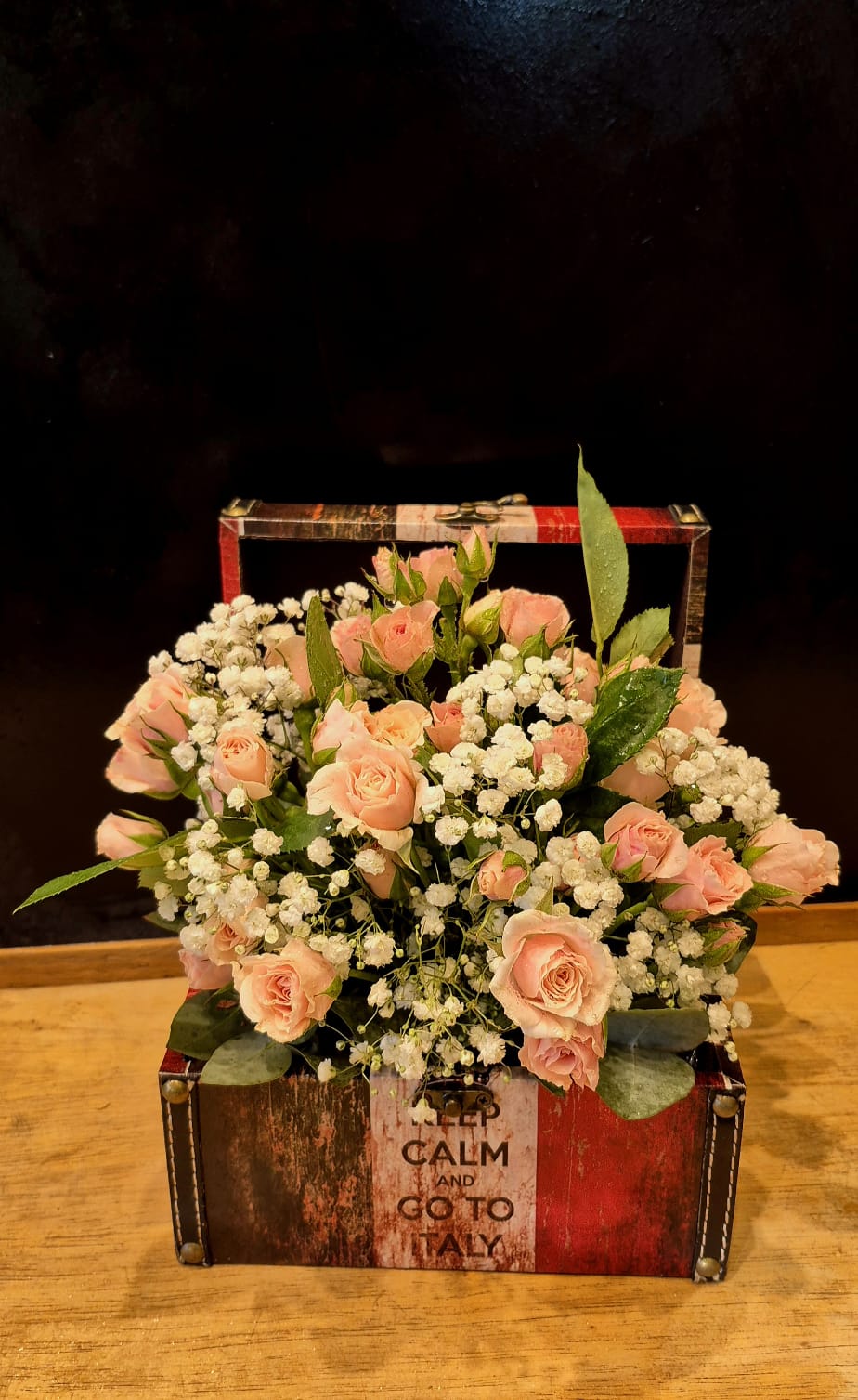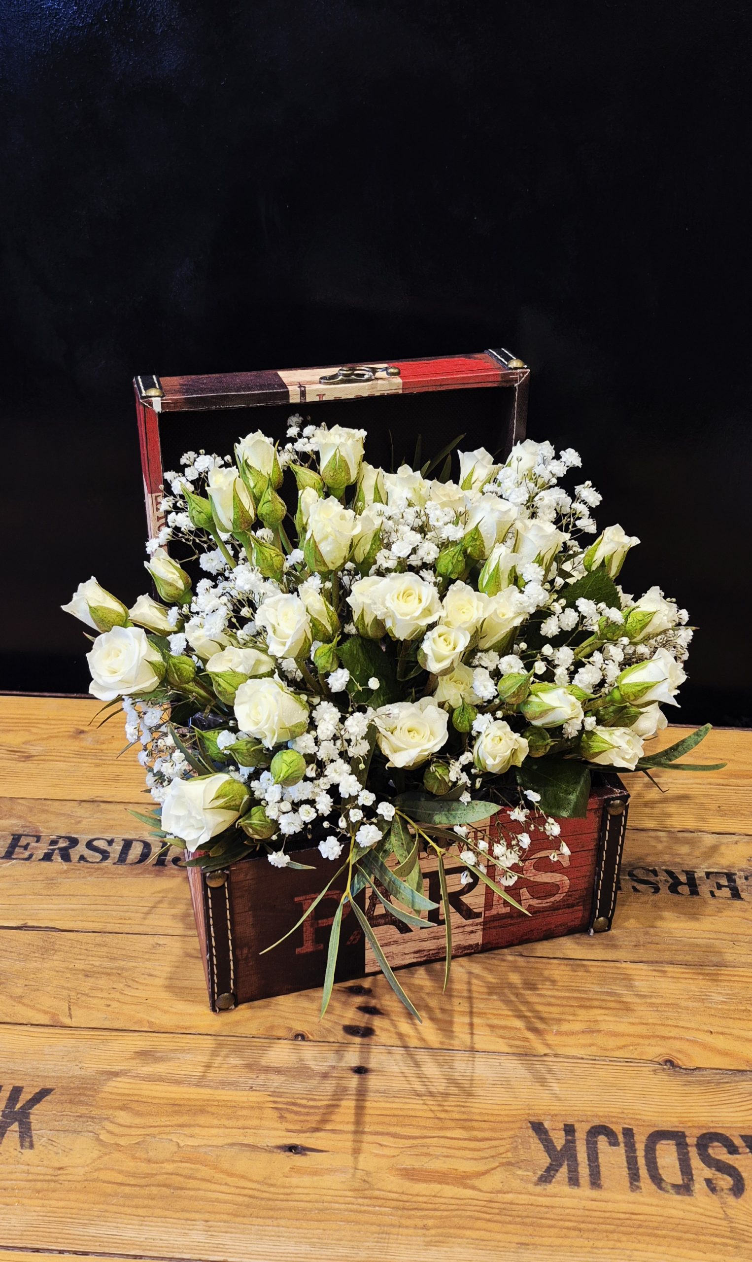 Cofre París con arreglo de rosas spray ( podés consultar por otros colores )