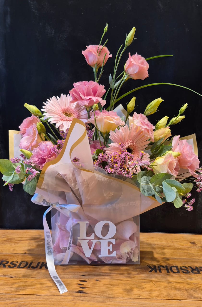Delicado arreglo floral en tonos rosados