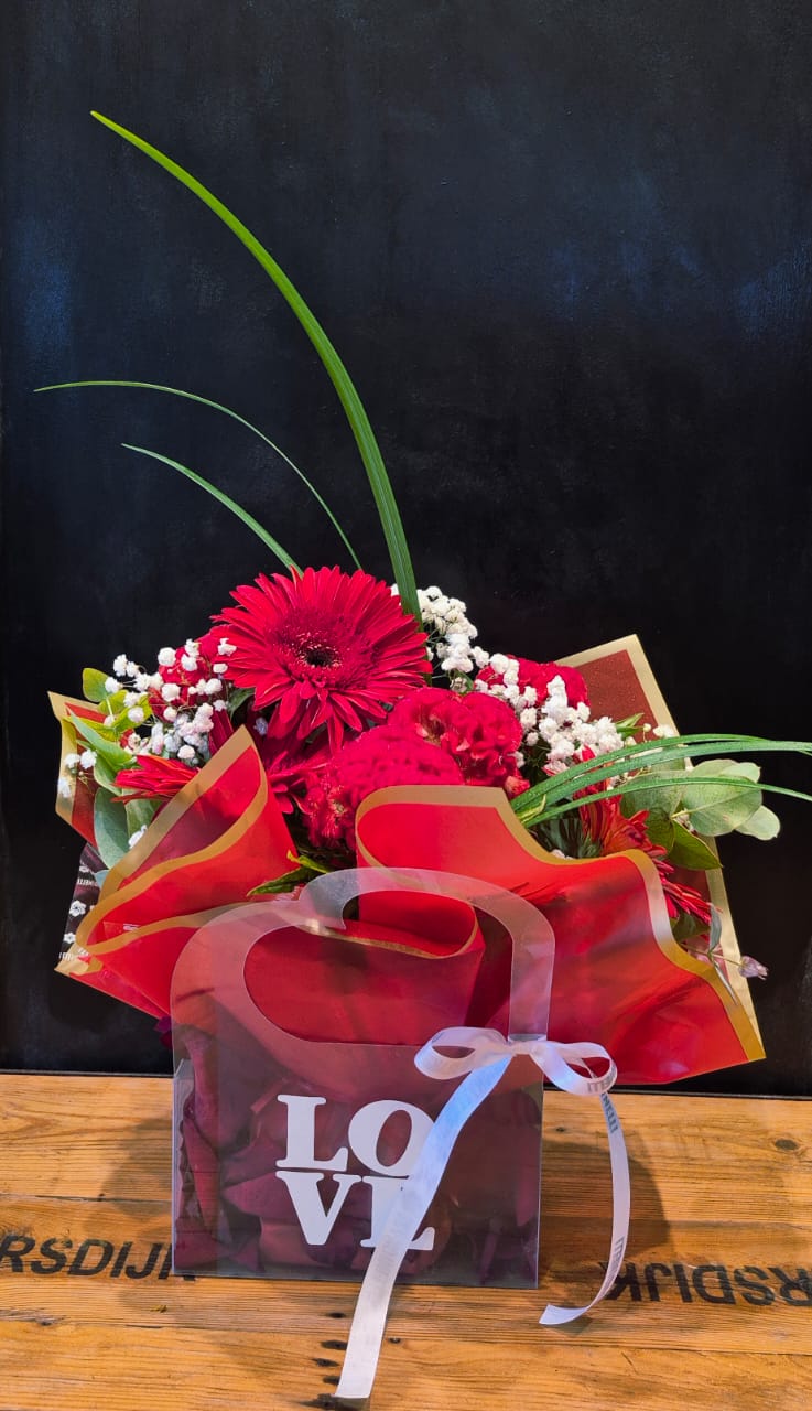 Arreglo de flores silvestres rojas.